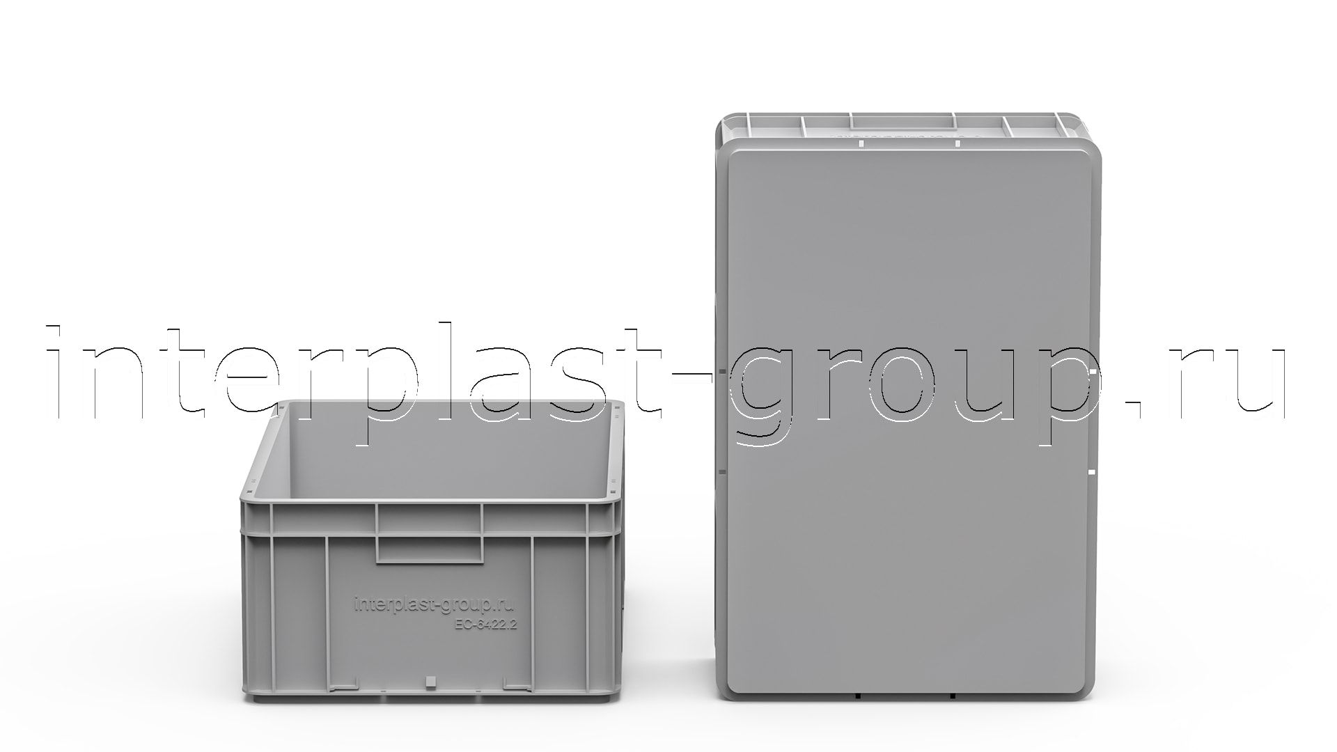 Евроконтейнер закрытые ручки/сплошное дно (серый), 600x400x220 мм