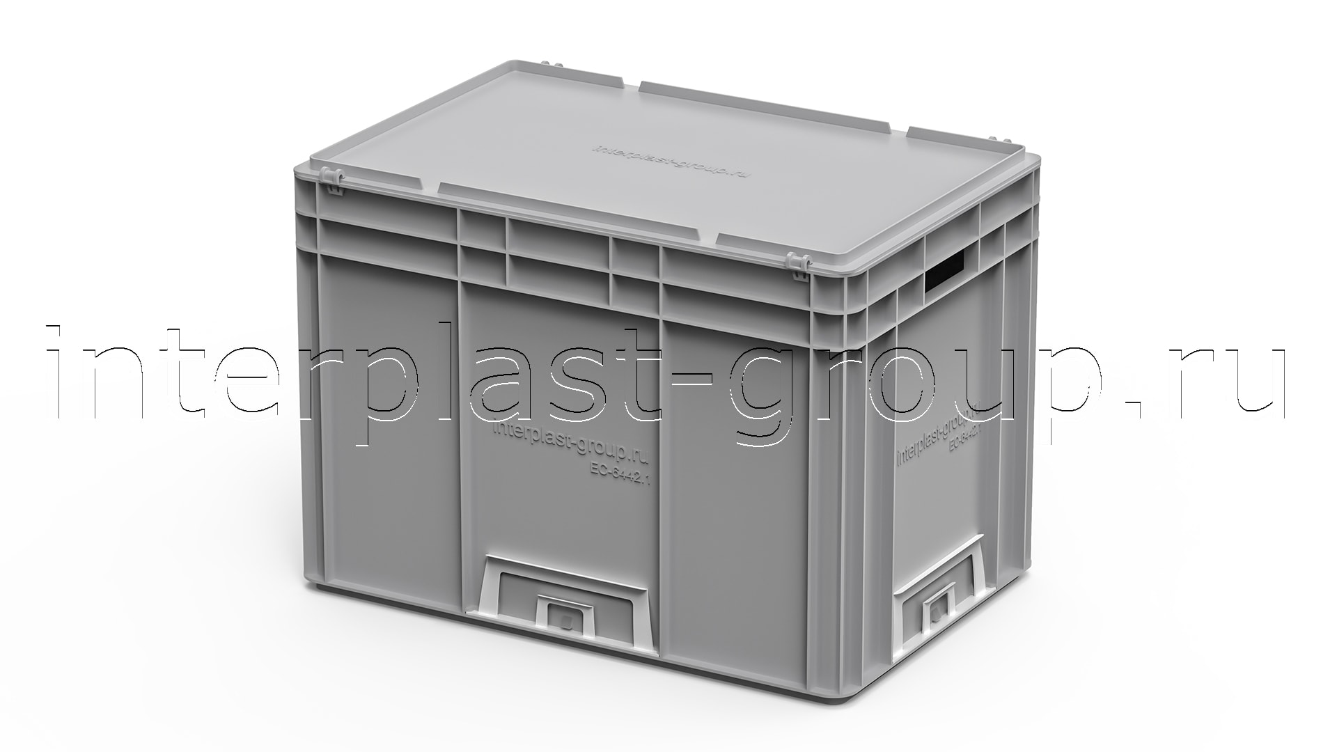 Евроконтейнер открытые ручки/сплошное дно (серый), 600x400x420 мм