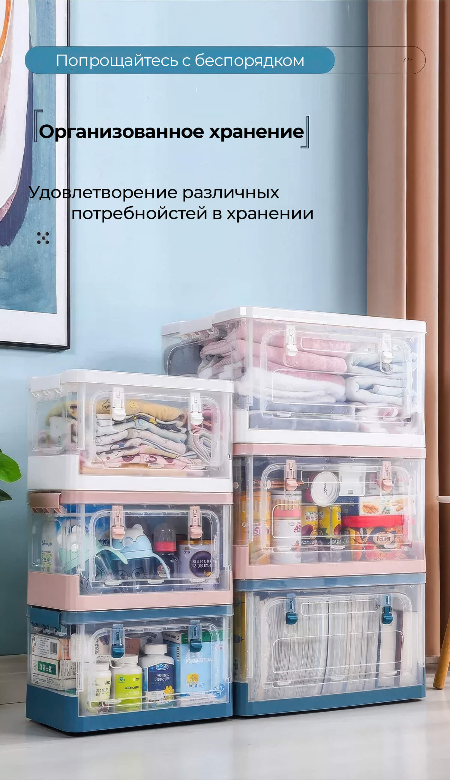 Этот пластиковый складной ящик – идеальный выбор для комфортного хранения. Прозрачные стенки позволяют легко видеть содержимое, а синее дно придает изделию стильный и аккуратный вид. Пластиковый контейнер отлично подходит для хранения одежды, игрушек, документов, бытовых принадлежностей и мелочей.